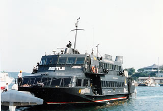 連休はどこへもいかず、部屋の片付けに専念する。というわけではないのだが、探していた高校時代の九州研修旅行の写真が出てきたので、スキャンしてみる。きちんとメモまでついて、バインダーに順番にとじてあった。そのかわり旅行記のようなものはなかったが。そのバインダーも本棚にしまってあったのだが、それに気付かなかった。ビートルに乗ったいきさつは前述のとおりで、開園まもないハウステンボスから平戸までの乗船だった。そのハウステンボスも10年。最近CMをやっていて、少しびっくりする。 とはいえ、自分ではビートルを撮らなかったようだ。この写真は、旅行後に写真屋さんから買ったものの1枚。おそらく引率のT先生が撮られたものであろう。撮り忘れたが、ビートルの記憶を求めて買ったのかもしれない。手前に出ている銀色のハネのようなものが、水中翼である。 この2枚は、10年前ちょうど登場した「つばめ」号。右はその車内で、ビュッフェである。八代−熊本間で乗車。当時は「ハイパー有明」と「つばめ」の両方が走っていたが、この車両に乗りたいがために、この列車を選んだのを思い出す。そう、私は旅行委員でした。 最後の1枚は、平戸の崎津天主堂。中が畳敷きだったのを思い出す。このほかに、自由行動の5人組の写真だとか、あの先生とあの人が写っている懐かしい写真だとか、あの人とあの人とあの人の(同じ苗字の)3人組の写真だとか、あの娘と一緒に写っている写真だとか…が出てきて懐かしむ。 「つばめ」登場からも10年。写真のビュッフェも今年から座席改造されて今はないと知る。 (11月4日記) |