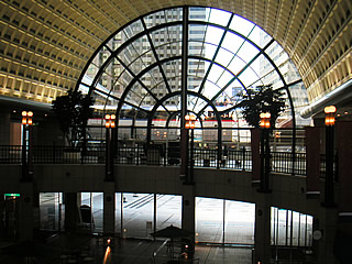 金曜の夜に、Z氏のお母さま宅に招待された。なんでも「一生に一度飲めるかどうかという珍しいお酒を手に入れた」とのこと。私は「一生に一度飲めるかどうかという美味いお酒」と思い込んでいたのだが、そうではなかった…。 でも、楽しい時間をすごさせてもらった。友人のお母さまも自分の母親と同じくらいの年代なのだが、話をすれば実の母親よりタメになる。 翌朝、R氏と一緒に辞したが、秋晴れのうららかな日差しに誘われて、天王洲まで歩いてみた。土曜の天王洲は、オフィスも休みで、静かな雰囲気。最初の写真は、シーフォートスクエアの吹き抜けから見えるモノレール。このシーンはいつもながら驚かされる。そこからどうやって帰ろうかと思案して、たとえば りんかい線 で大井町という手ももちろんあるが、久しぶりということもあって、モノレールで羽田空港まで出てみた。 なにも用がないときに行く空港というのは面白い。飛行機など数えるほどしか乗ったことがないので、いろいろなものが珍しく楽しい。三連休の初日ということもあって、多くの旅行客で混雑していたが、その混雑もまた賑わいに感じられる。ガレリアの最上階から展望台へ出てみた。飛行機の音というのが思いのほか大きいことに気づかされる。最近のビックバードでは、結婚式もやっているようで、展望台下のホールでは披露宴が行われていて、花嫁さんが写真を撮っていた。式場からは空港が一望できるようで、遠方の親戚などでもアクセスは便利だし、これもなかなか面白い。空港内のティーラウンジで休憩した後、京急で帰ることにした。ちょうど、羽田発特急新逗子行きがあったので、これなら乗り換え無しで横浜まで行ける。4両編成は蒲田の1番線で逆方向へ転換し、川崎の手前で一時停止。待避線にいるあいだに、後続の8両快特に抜かされる。それが川崎駅のホーム前方で待っていて、それに後から連結する。なかなかアクロバティックな運用だ。話には聞いていたが、知ると乗るとでは大違い。 うららかな秋の一日の小旅行でありました。 |