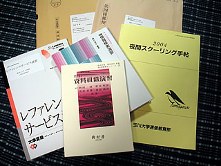 ![]() 仕事が多忙につき、第1回のレポート提出は見送る。はじめからこんな調子で、どうなるものやら。 5月10日から7月2日まで、月・水・金の夜間スクーリングのテキスト類が届く。 時間割を見ると、第一期(〜6/4)は、1時限目が 資料組織演習II、2時限目が 資料組織演習I。第二期(6/7〜)が、1時限目が情報検索演習、2時限目がレファレンスサービス演習。どちらも2時限目のほうだけ2クラスあるということは、毎年1時限目と2時限目が交互に実施されていて、2時限目だけ出席という2年越し(以上?)の学生が多い…ということか!? |