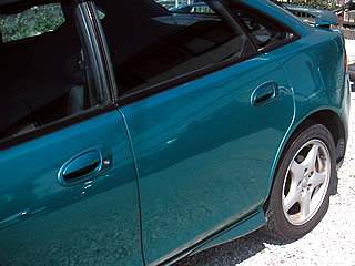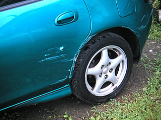 12ヶ月点検にあわせて、○万円をかけて、1年ぶりに直す。というか、前回の車検直後のキズだったので、やむなく1年間の放置。 うわ〜、きれいになおったよ〜〜〜〜(感涙) 今回の点検では、 ・オイル交換/フィルター交換 ・プラグ(6本)交換 ・フロント/リアブレーキパッド交換 それから ・運転席側のキーシリンダが壊れて、キーが刺さらなくなってしまったのを修理(分解してフタがなくなってしまったが、それは許容。別なキーになってしまうよりかはぜんぜんマシ) ついでに ・光軸調整 をしてもらった。 なお、直す前の傷跡はこんなかんじ。