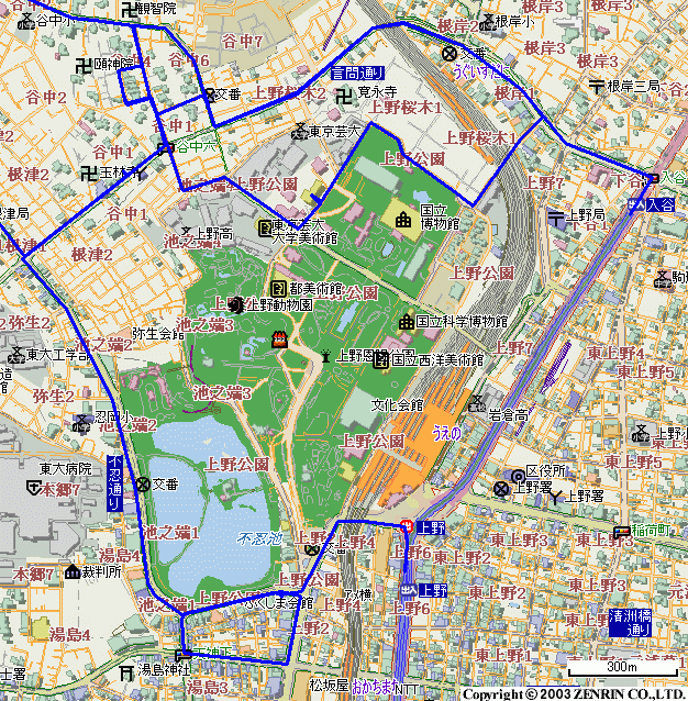 | 再度車に乗せて、しばらく上野周辺を散策する。言問通りをさらに北上すれば、寛永寺陸橋でJR線を渡り、入谷あたりへ降りてくる。すぐの信号を右折して、鶯谷駅へあがる。いつもの芸大の前の道へ…と思ったが、その道は一方通行。父親はもちろん、私たちも歩いてしか来たことがないので、そういった思い違いもおこる。