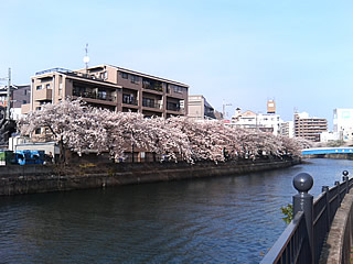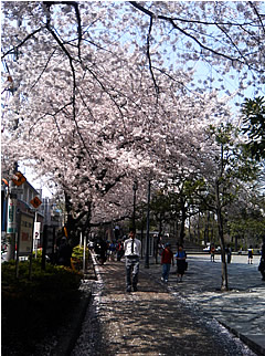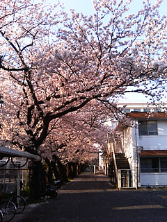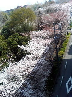 窓の外には、桜並木。なんだか知らないが、しょっちゅう引越のある会社なので、昨年は反対側の窓に面したところに座っていたし、来年はこの窓の前にはいないことも決まっている。 |