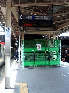 大船駅の北口建設工事が佳境に入っている。北口は現在の乗換階段を生かして作られるが、階段自体は撤去され、橋だけが新しいコンコースの一部として利用される。 すでに、乗換階段の片側の階段は撤去されたが、この月曜日朝から残っていた階段も封鎖され、順次撤去される。 毎日のように昇った階段。もう、あの階段を昇ることはない。 現在の橋上駅舎とこの乗換階段の橋部分までがつながって、広く一体化されたコンコースとなるが、すでに完成している一部分だけが、新しい乗換階段として替わりに利用できるようになった。 また、改札口正面の不二家・DPEスタンド・駅弁屋も、この週のうちに撤去され、やがては壁がぶちぬかれるのだろう。 (写真:7日撮影) |