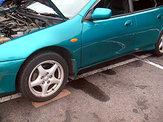 オイル漏れの正体は、油圧の異常上昇を検知するオイルセンサースイッチの経年劣化とのこと。ディーラの方は「クルマが入ってきてポタポタ滴がたれている場所から、見当がつきました」といわれる。 部品代900円。工賃1500円。小一時間で交換終了。 しばらく前からアンダーカバーがゆがんでいるのには気付いていた。オイル漏れの影響を受けて変形していたとも考えられる。確かに、停めた後にオイルの染みに気付いたこともあったか。前からの症状で、走行会で回しすぎた時に状況がひどくなったということか。では、車検の時にはどうだったのか? |