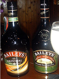 アイルランドのリキュール。アイリッシュクリームというのか。東京駅のコンコースに、大きな広告があって、それが BAILEY'S だった。温めたミルクで割るのが常道とのこと。ホットミルクなんて、オトコの飲み物ではないかもしれないが、美味いんだからしょうがない。 左が新しいラベル。右が従来のラベル。 |