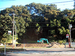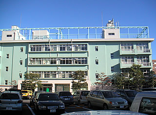 そうだ。桂町交差点も、消えていく風景の一つだった。横浜環状南線の公田インターからの出口が、この交差点に直結される。 この写真に見える山の真ん中に、ぽっかりとトンネルが出来る、、、ことになるのだ。 すでに、この地にあった古アパートも無くなった。先週までは見えなかったシャベルカーが整地をはじめている。 いよいよ仮囲いで覆われる日も近いのだろう。 おまけ。投票に行ったおり、久しぶりによく見たら、緑色に塗られていた。栄区役所本館。かつて私が学んだ本郷台小学校の校舎である。 |