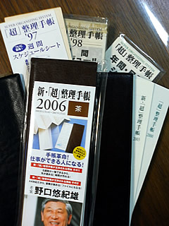会社に入ってから、手帳を必要としなかったのだが、ここへきて、会議や打ち合わせやらがどんどん増えてきた。うっかりすると1日の大半が会議だったりして、通常のシゴトが全く出来なくて困ってしまう。ということで、来年に備えて、手帳を調達。 学生の頃は、初代の「『超』整理手帳」から使い続けていたのだが、ここ数年は買わずにいた。古い手帳カバーを引っ張り出してきて、よし、まだ使えるぞ。来年がよい1年でありますように。 |