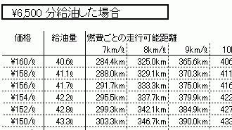 そういえば、去年もそんなことを書いた気がする(去年の日記を参照)。8月1日からガソリンが10円ぐらい値上がりした。去年作った表の範囲を超えてしまったので、作り直しました。 ダウンロード→ gas2006.pdf(45kb) |