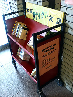 ●平成18年9月1日(金)より、当館1階入口横に、「栄区リサイクル文庫」を開設します。だれでも自由に不用になった本を置き、または読みたい本を持ち帰ることができます。 皆様が読み終わった本も、きっと読みたい方がいます。是非、ご利用ください。 横浜市栄図書館 |