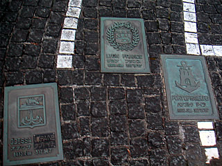 ●旧露亜銀行 最後は警友病院別館だったので「旧警友病院別館」といわれたことがあったが、最近は最初の「旧露亜銀行」と言うらしい。 1921年(大正10年)頃の建築。山下町51-2。 設計はバーナード・マイケル・ワード(Bernard Michael Word)とのこと。 モーガンが事務所を置いたこともあるとか。 ●旧横浜居留地48番館 ![]() ![]() ![]() 紅茶やダイナマイトを取引していたJ・Pモリソン商会の建物で、明治16年に建てられたという。倉庫として使われていたのを解体した最中にレンガ積みの壁が発見されて、保存につながったもの。レンガはフランス積み。区画整理で右側の道路が出来たので、当初の建物の右側を削ったものらしい。道路が変わっても、この場所は現在も山下町48番地。 右に揚げた古い地図は、内務省地理局測量課編 横浜実測図。明治14年のもの。横浜市立図書館のHPにあがっているのを無断引用(画像キャプチャコピー&北向きだけ調整)。 内務省地理局測量課編 横浜実測図 ●電話交換創始の地 横浜電話交換局跡 明治23年12月16日開始。とある。 ●開港記念広場 ・日米和親条約締結の碑がある。 そのほか、横浜との姉妹友好都市、姉妹友好港の方角を示したレリーフがある。 ![]() 【姉妹友好都市】(8つ) サンディエゴ市(アメリカ合衆国)- 1957年(昭和32年)10月29日提携 リヨン市(フランス共和国)- 1959年(昭和34年)4月7日提携 ムンバイ市(インド)- 1965年(昭和40年)6月26日提携(当時はボンベイだったろう) マニラ市(フィリピン共和国)- 1965年(昭和40年)7月1日提携 オデッサ市(ウクライナ)- 1965年(昭和40年)7月1日提携(当時はソ連か) バンクーバー市(カナダ)- 1965年(昭和40年)7月1日提携 上海市(中華人民共和国)《友好都市》- 1973年(昭和48年)11月30日提携 コンスタンツァ市(ルーマニア)- 1977年(昭和52年)10月12日提携 【姉妹友好貿易協力港】(6つ) オークランド港(アメリカ合衆国)1980年5月2日提携 バンクーバー港(カナダ)1981年5月15日提携 上海港(中華人民共和国)《友好港》1983年10月12日提携 メルボルン港(オーストラリア)《貿易協力港》1986年5月24日提携 大連港(中華人民共和国)《友好港》1990年9月5日提携 ハンブルク港(ドイツ連邦共和国)1992年10月27日提携 横浜豆知識【横浜のあゆみ】 横浜市 都市経営局 国際政策室 国際交流 横浜市港湾局 姉妹港・友好港 |