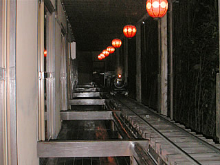 先日、九州鉄道土産をいただいたので気づいたのですが、会社の4階の方々には、鉄道ファンが多いらしい。ということで、1日旅行でもと声をかけてみたら…なんと皆さん、週末のたびに全国各地にお出かけなど、私なんかよりものすごく筋金入り。恐れ入りました。。。。 そのかわり、ということで、SLがお料理を運んでくれるというお店での飲み会と相成りました。 6階の人は私だけであとは4階の方々総勢7名が参集。普段あまり飲んだりしない方々なので、楽しい話ができました。特に「鉄」分の濃いはなしばかり。 18キップ8000円、千葉都市モノレール、湘南モノレール、ゆいれーる、台湾新幹線、、、、、 話しの中身はともかく、そのお店がすごかったので以下写真を並べてみます。 会社を18時半に退社。埼玉高速線新井宿駅下車。122号線沿いにそのお店はありました。 ![]() おおお。確かに「汽車でお料理を運ぶ」とあるぞ!! ![]() お店に入ると、なんだか「鉄」っぽいグッズがいくつも ![]() すべて個室で、各部屋は京浜東北線の駅名がついています。ここは「上中里」のお部屋。ちなみに2階は山手線だそうです。 ![]() お部屋の反対側にはベランダのように外廊下があります。その外廊下の向こうからなにか来る!? ![]() SL キターーーー! けむり吐いてるしなかなか本格モノ! ぴったりお部屋の前に到着すると、室内にアナウンスが流れます。 ![]() 牽かれている客車を開けると、お料理が!!! ![]() 時間がかかりますが、かまめしがなかなかおいしい! ![]() となりの部屋に止まるとこんな感じ。ちゃんと尾灯がついている。 ![]() 線路を観察すると、ちゃんと自動停止装置らしきものが付いていました。んー本格派 ![]() なんか、これ以外にも、いろいろ構想はあったようですね。乗れる!? ということで、楽しいお店と楽しい会でした。やー、会社にもこんなに「鉄」なおはなしができる人がいっぱいいらっしゃるなんて、しらなかったー。みなさんありがとうございました。またやりましょう。 |