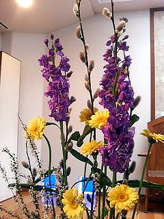 ・交読文:マタイ6章何を食らい何を飲まんと命のことを思いわずらい、 何を着んと体のことを思いわずらうな。 命は糧にまさり、 体は衣にまさるならずや。 空の鳥をみよ、播かず刈らず倉に収めず、 しかるに汝らの天の父は、これを養いたもう。 … このゆえに明日のことを思いわずらうな、 あすはあすみずから思いわずらわん、 一日の苦労は一日にて足れり。 ・讃美歌:523番 4月8日がイースター。召天者を覚える日です。 * * * 土曜日の夜は、久しぶりに(今年初か)Z氏宅で飲み。そのまま横浜新道で直行。礼拝に望めて感謝です。 * * * 青紫色のストック。ストックの花をみて、ふいに、先輩の卒業式に持っていった花束を思い出した。 高校の先輩というのは3学年上の先輩方。以前結婚パーティーに招かれたM先輩と、最近マイミクのT先輩と。それからコンセールのS先輩と。 私が中学3年生だったので、えーとえーと16年前の3月になるのか。 お花屋さんでお花を買うなんてしたことなく、ひとつだけ聞いた花の名前が「ストック」だった。冷たい雨の中両手いっぱいに花束を抱えて、先輩にお渡しできたのを覚えている。 あ、コンセールのS先輩だけは、本人のたっての希望でチューリップにしたんだっけか。 |