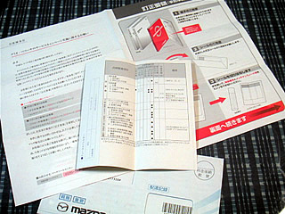 MAZDAから配達記録で書面が届く。あけると「サービスキャンペーン」とのこと。なんでも、マニュアル記載の「燃料フィルタの交換時期」が、本来は14万キロのところ、5万キロと誤記されているとのこと。取扱書とメンテナンスマニュアルの訂正用シールが同封されてきた。ふむん。