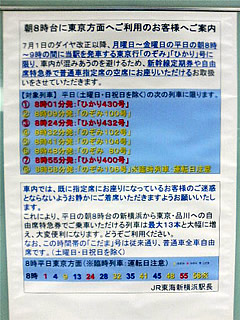 平日朝8時代のみの特例扱い。混雑の平準化って、新横浜から新幹線通勤する人は、結構多いのでしょうね。