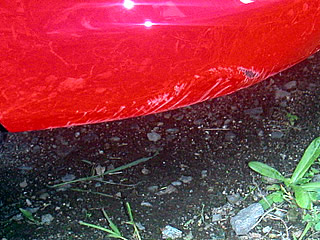 ![]() ![]() 母親が帰ってくるなり「こすっちゃった」と。林道から鋭角左折で公道へ出ようとした際に、左後を引っ掛けたらしい。 後のバンパー下面に傷があり、バンパーそのものが外れて止まらなくなってしまっている。 夕方だったので、止めてもらうだけでもと、すぐさまディーラーへ持って行ったが、止め具のプラスチックの部品は取り寄せとのこと。それなら3千円。 もしバンパーを交換するのであれば、バンパーそのものはエアロタイプなので無塗装のものしかなく、交換+塗装で5万円コース。まあ、バンパー下部なので、ヤスリかけてタッチアップしておけばよいだろう。 |