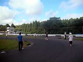 今年は走るクルマなどないので、行かないつもりでいたのですが、走らないスタッフが一人ぐらいいたほうがよかろうかと。 今年はバーべキューしないとしたので、準備もラク。また、参加人数も少なくしたので、その分みんな走行に専念できたのかなと。 ただし、今回のサーキットは計時が記録されないとのことで、それでは記録係を買って出た。 今回のコースは屋根アリ。この日陰がとっても大事と痛感。 ![]() コース全景 ![]() 慣熟歩行 走行中は記録にいそしんでいたので、写真はなし ![]() レースクイーン! |