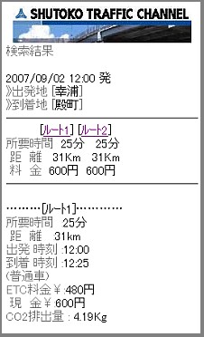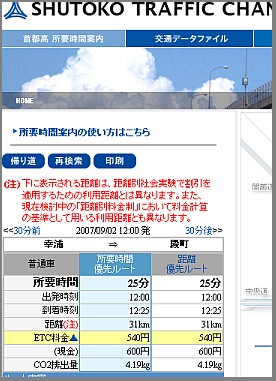 虎視眈々と距離別料金の導入に躍起になっている首都高だが、いつのまにか「社会実験」と称して、距離別割引を開始していた。 8月19日(日)から、日曜日・祝日に限ってかつETCに限って"距離別"に料金を設定している。 神奈川線に限って言えば、通常600円のところ、8km未満は420円、8〜16kmは480円、16km以上は540円という設定だ。8月までは、日曜祝日割引として20%引き(480円)だったので、16km以上は値上げ(というのは言いすぎか、割引の減少)、8km未満については割引の拡大、となったわけだ。 さて、ではどのくらい走ったら16km以上になるのか、ということだが、これがさっぱりわからない。 これまで均一区間だったので、各IC間の距離などがわかるかたちで公開されていないのだ。 それなら、各IC間の料金表が示されるのかと思いきや、それもない。 なんと、「ご利用区間ごとの通行料金の検索は 経路・所要時間案内(首都高トラフィックチャンネル)をご利用ください。」とあるだけ。リンクをクリックして飛んでみると、使いにくいフラッシュで、いちいちクリックして発着ICを選択しないと料金が出てこないのだ。 また、同じサイトに「所要時間案内モバイル版」なるサイトがある。こちらで調べてみると、どうも結果が違う。どっちだー。というか、なんたるいいかげんさ。 左)PCサイト:幸浦→殿町 日曜日。ETCで540円。 右)モバイル版:同日同時刻なのに480円。 さらに、PCサイトの検索結果の注意書きには、ご丁寧に赤字で「下に表示される距離は、距離別社会実験で割引を適用するための利用距離とは異なります。 」とまで書かれている。じゃあ、「割引を適用するための利用距離」はどこに提示されているのかと小一時間(ry 料金のご案内(普通車料金表(日曜・祝日)/首都高速道路株式会社 SHUTOKO TRAFFIC CHANNEL 首都高の交通に関する総合情報 首都高速所要時間案内(モバイル版) |