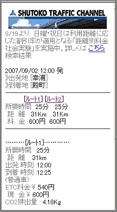 * 2007年9月6日 Thu 首都高の日曜日の距離別料金…(略)…について(その3) |